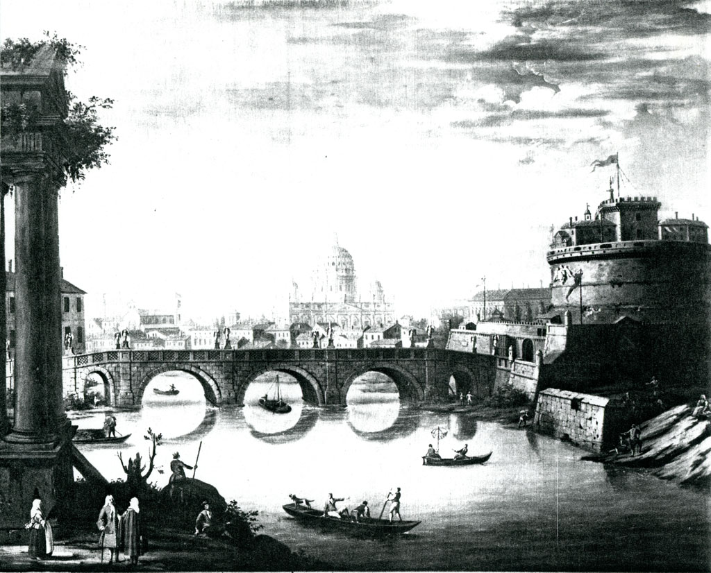 veduta di Castel Sant'Angelo e della Basilica di San Pietro a Roma dal Tevere - dipinto