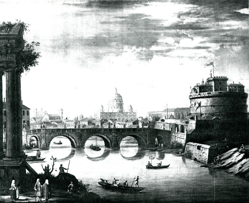 veduta di Castel Sant'Angelo e della Basilica di San Pietro a Roma dal Tevere - dipinto