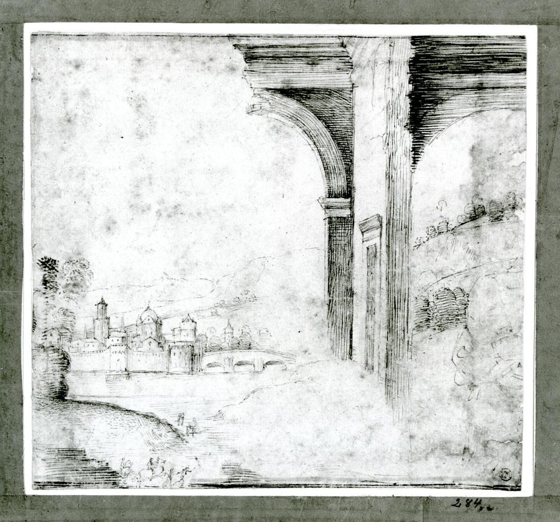 paesaggio con rovine e una cittą fortificata sullo sfondo - disegno - Svezia - Stoccolma - Nationalmuseum