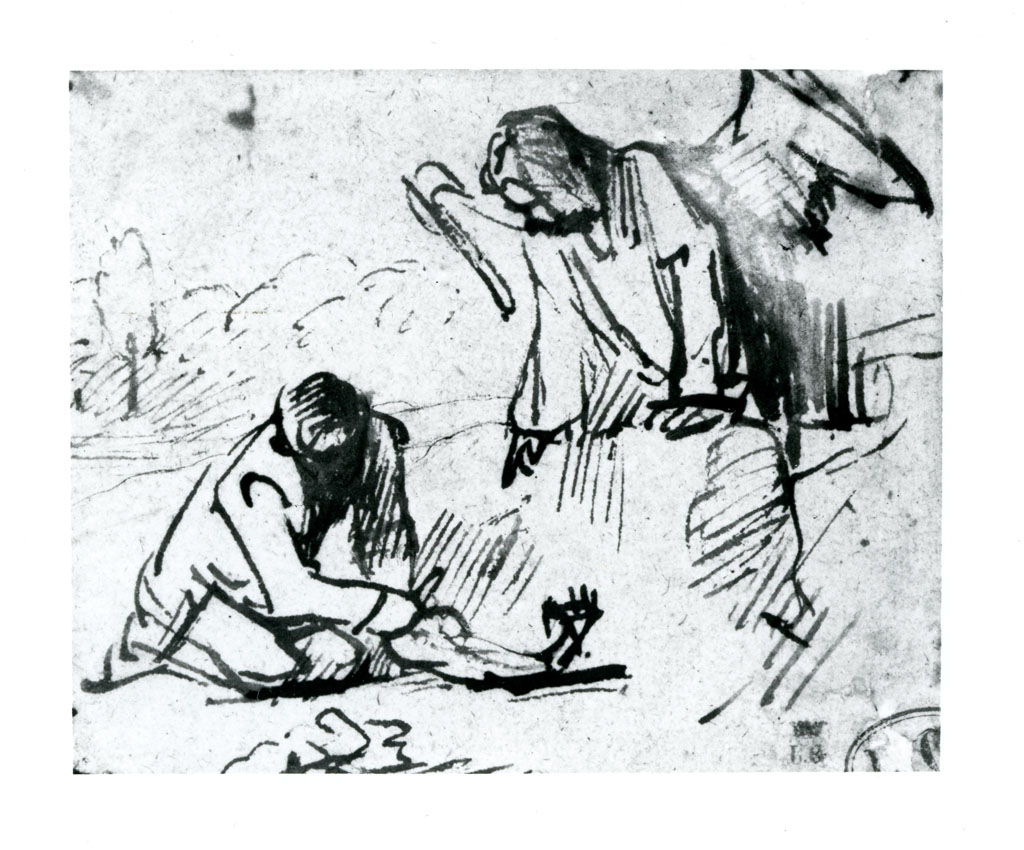 l'angelo Raffaele dice a Tobia di tagliare alcune parti del pesce - 1655-1660 ca. - disegno - Svizzera - Lausanne - Fondation Jan Krugier