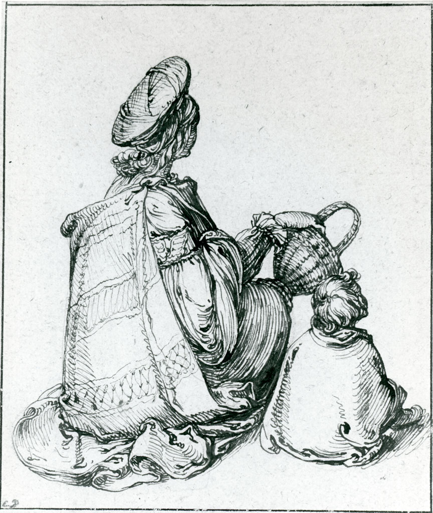 una donna e un bambino seduti - disegno - Regno Unito - Oxford - The Ashmolean Museum of Art and Archeology