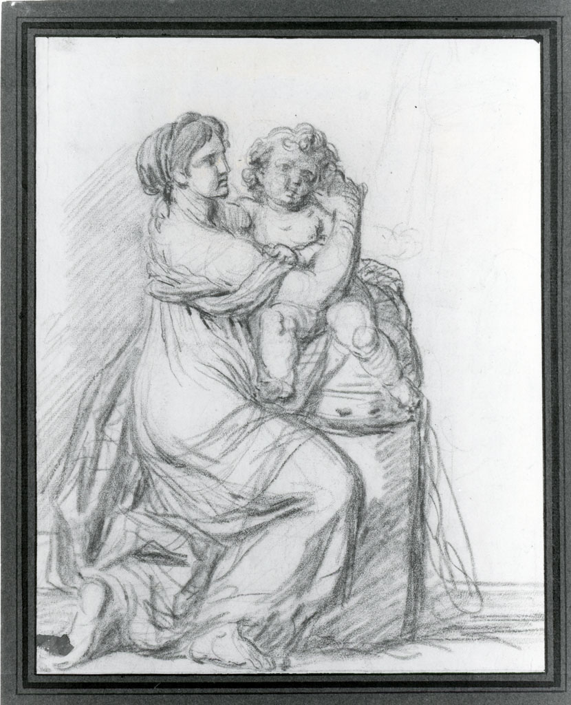 donna inginocchiata con bambino - disegno - Regno Unito - Oxford - The Ashmolean Museum of Art and Archeology