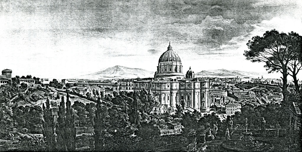 veduta di Roma con l'abside della Basilica di San Pietro - dipinto